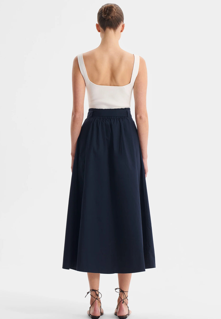 The Romy Skirt is crafted from midweight cotton poplin with a semi-elasticised waistband for comfort and ease. Designed with front hip pockets and a flared silhouette, it falls to a versatile midi length. Complete with a self-fabric waist belt, this skirt offers a polished, effortless finish.