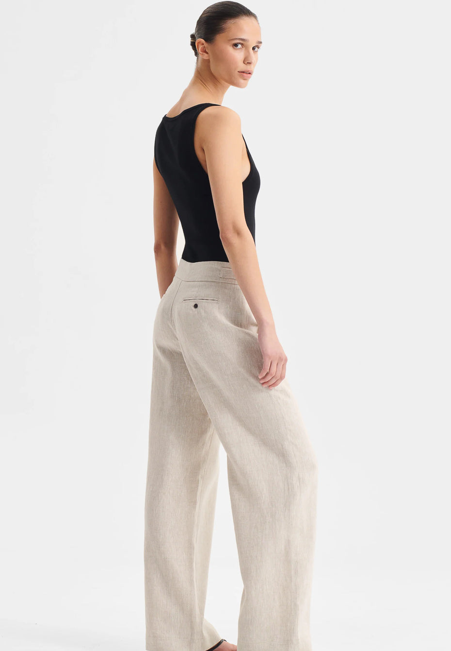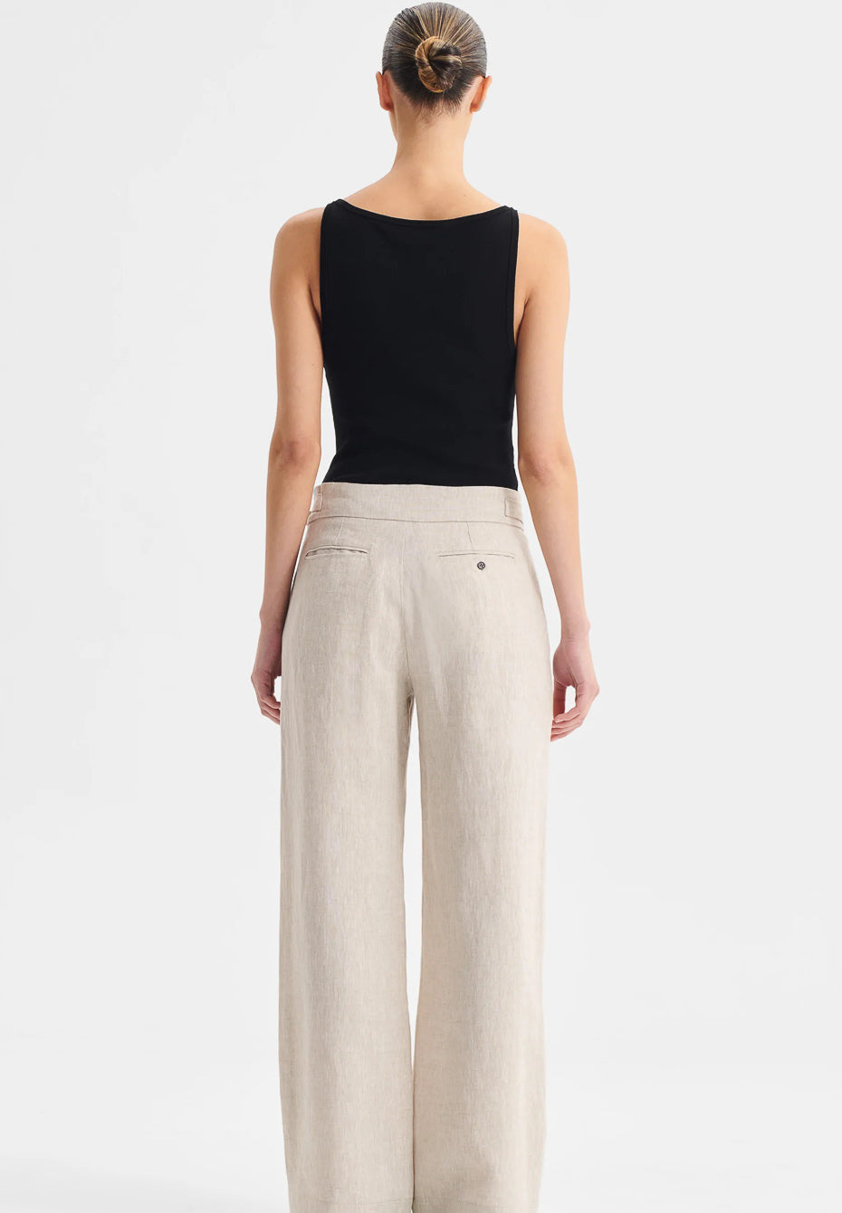 Crafted from premium linen, the Sonny Pant offers effortless polish with a mid rise waist, adjustable side tabs, and zip fly front. Finished with angled front and back jet pockets, the straight, full length leg delivers timeless ease and versatility.