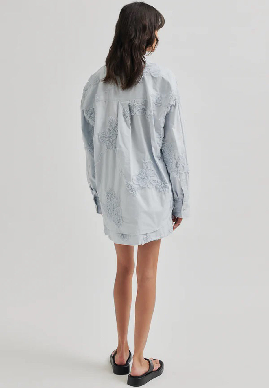 Second Female 3D shirt. The shirt is made in smooth organic cotton with 3D mesh flowers. Featuring a regular collar and button-through fastening. Long sleeves with buttoned cuffs. Box pleat at back yoke. Shaped bottom hem. Loose fit.